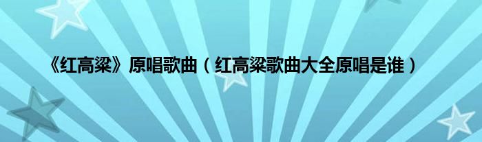 大家好,小常来为大家解答以上问题。《红高粱》原唱歌曲,红高粱歌曲大全原唱是谁很多人还不知道,现在让我们一起来看看吧!