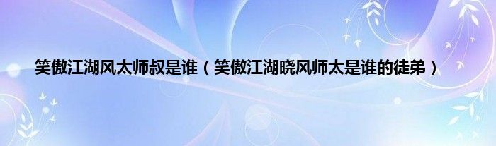 大家好,小常来为大家解答以上问题。笑傲江湖风太师叔是谁,笑傲江湖晓风师太是谁的徒弟很多人还不知道,现在让我们一起来看看吧!