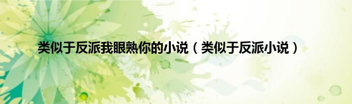 大家好,小常来为大家解答以上问题。类似于反派我眼熟你的小说,类似于反派小说很多人还不知道,现在让我们一起来看看吧!