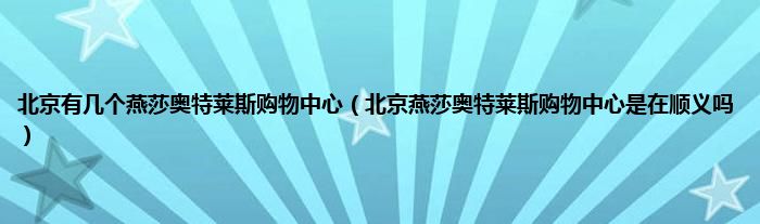 大家好,小常来为大家解答以上问题。北京有几个燕莎奥特莱斯购物中心,北京燕莎奥特莱斯购物中心是在顺义吗很多人还不知道,现在让我们一起来看看吧!