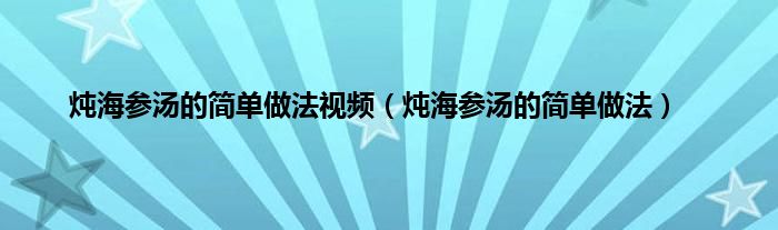 大家好,小常来为大家解答以上问题。炖海参汤的简单做法视频,炖海参汤的简单做法很多人还不知道,现在让我们一起来看看吧!