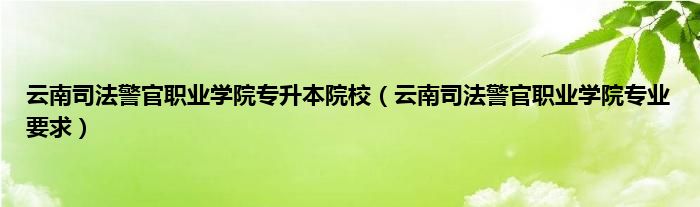 大家好,小常来为大家解答以上问题。云南司法警官职业学院专升本院校,云南司法警官职业学院专业要求很多人还不知道,现在让我们一起来看看吧!