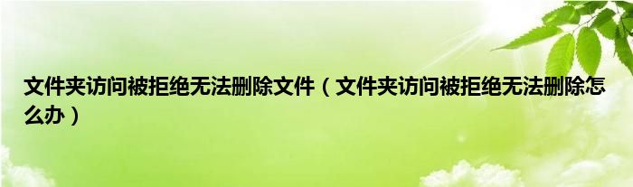 大家好,小常来为大家解答以上问题。文件夹访问被拒绝无法删除文件,文件夹访问被拒绝无法删除怎么办很多人还不知道,现在让我们一起来看看吧!