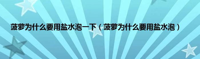 大家好,小科来为大家解答以上问题。菠萝为什么要用盐水泡一下,菠萝为什么要用盐水泡很多人还不知道,现在让我们一起来看看吧!