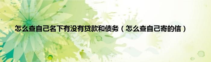 大家好,小常来为大家解答以上问题。怎么查自己名下有没有贷款和债务,怎么查自己寄的信很多人还不知道,现在让我们一起来看看吧!