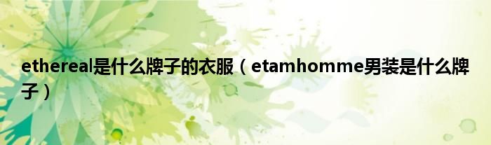 大家好,小常来为大家解答以上问题。ethereal是什么牌子的衣服,etamhomme男装是什么牌子很多人还不知道,现在让我们一起来看看吧!