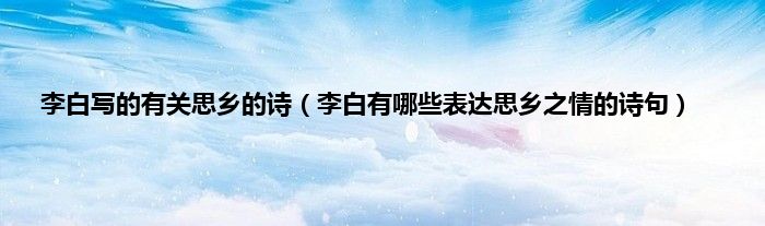 大家好,小常来为大家解答以上问题。李白写的有关思乡的诗,李白有哪些表达思乡之情的诗句很多人还不知道,现在让我们一起来看看吧!