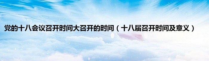 十八届召开时间2012年11月8日,十八届是我们党在全面建设小康社会的关键时期和深化改革开放加快转变经济方式的攻坚时期召开的一次十分重要的会议,是全党全国各族人民政治生活中的一件大事,对我们党高举中国特色社会主义伟大旗帜,团结带领全国各族人民继续全面建设小康社会、坚持科学发展观、加快推进社会主义现代化、开创中国特色社会主义事业新局面具有重大而深远的意义。
