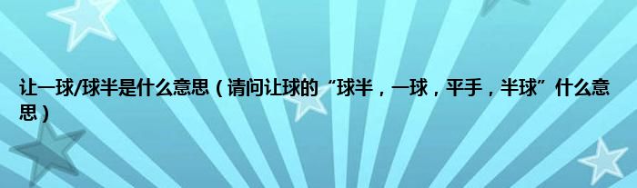 大家好,小常来为大家解答以上问题。让一球/球半是什么意思,请问让球的“球半,一球,平手,半球”什么意思很多人还不知道,现在让我们一起来看看吧!