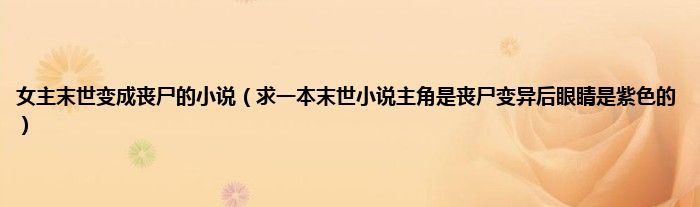 大家好,小常来为大家解答以上问题。女主末世变成丧尸的小说,求一本末世小说主角是丧尸变异后眼睛是紫色的很多人还不知道,现在让我们一起来看看吧!