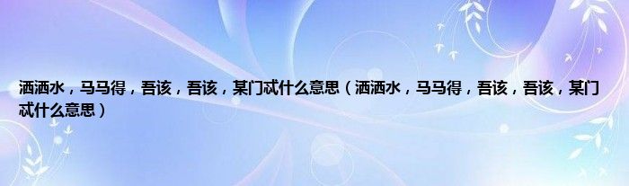 大家好,小常来为大家解答以上问题。洒洒水,马马得,吾该,吾该,某门忒什么意思,洒洒水,马马得,吾该,吾该,某门忒什么意思很多人还不知道,现在让我们一起来看看吧!