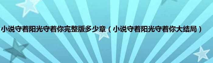 大家好,小常来为大家解答以上问题。小说守着阳光守着你完整版多少章,小说守着阳光守着你大结局很多人还不知道,现在让我们一起来看看吧!