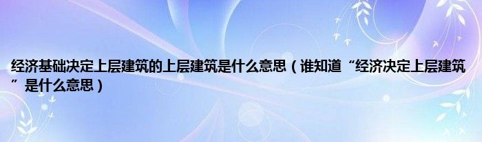 大家好,小常来为大家解答以上问题。经济基础决定上层建筑的上层建筑是什么意思,谁知道“经济决定上层建筑”是什么意思很多人还不知道,现在让我们一起来看看吧!