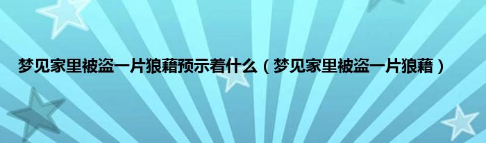1、梦见家里被盗一片狼藉,预示着近期情绪会低落,在热闹的聚会上不要选择最后走,因为狂欢过后会让你更加感到空虚,所以还是选择早点走比较好。