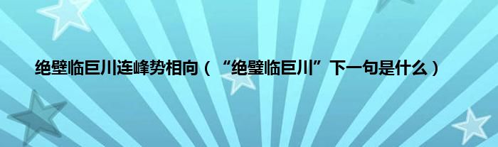 大家好,小常来为大家解答以上问题。绝壁临巨川连峰势相向,“绝璧临巨川”下一句是什么很多人还不知道,现在让我们一起来看看吧!