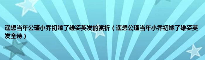 遥想公瑾当年,小乔初嫁了,雄姿英发。