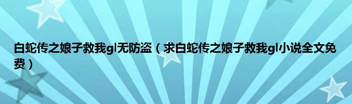 大家好,小常来为大家解答以上问题。白蛇传之娘子救我gl无防盗,求白蛇传之娘子救我gl小说全文免费很多人还不知道,现在让我们一起来看看吧!