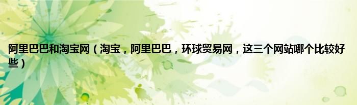 大家好,小常来为大家解答以上问题。阿里巴巴和淘宝网,淘宝,阿里巴巴,环球贸易网,这三个网站哪个比较好些很多人还不知道,现在让我们一起来看看吧!