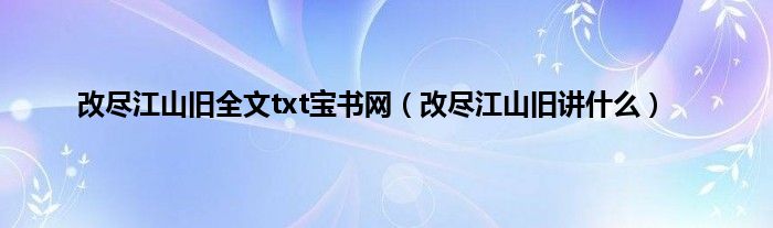 大家好,小常来为大家解答以上问题。改尽江山旧全文txt宝书网,改尽江山旧讲什么很多人还不知道,现在让我们一起来看看吧!