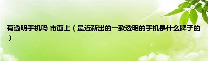大家好,小常来为大家解答以上问题。有透明手机吗 市面上,最近新出的一款透明的手机是什么牌子的很多人还不知道,现在让我们一起来看看吧!