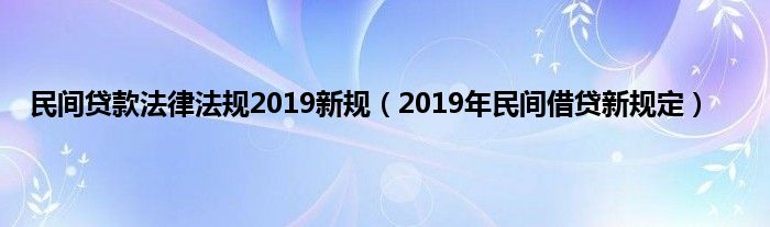 大家好,小常来为大家解答以上问题。民间贷款法律法规2019新规,2019年民间借贷新规定很多人还不知道,现在让我们一起来看看吧!