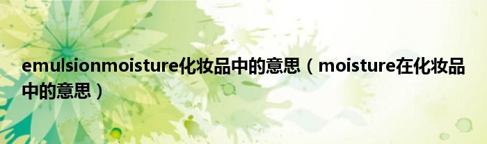 大家好,小科来为大家解答以上问题。emulsionmoisture化妆品中的意思,moisture在化妆品中的意思很多人还不知道,现在让我们一起来看看吧!