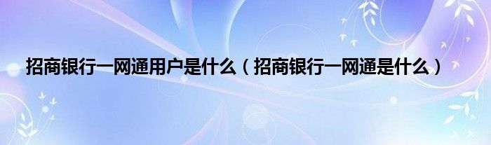 大家好,小常来为大家解答以上问题。招商银行一网通用户是什么,招商银行一网通是什么很多人还不知道,现在让我们一起来看看吧!