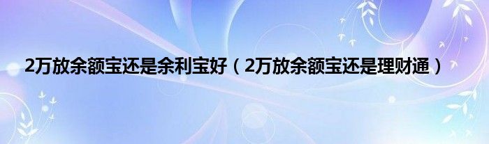 大家好,小常来为大家解答以上问题。2万放余额宝还是余利宝好,2万放余额宝还是理财通很多人还不知道,现在让我们一起来看看吧!