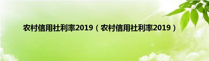 大家好,小常来为大家解答以上问题。农村信用社利率2019,农村信用社利率2019很多人还不知道,现在让我们一起来看看吧!