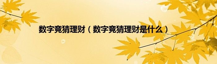 数字竞猜理财(数字竞猜理财是什么)