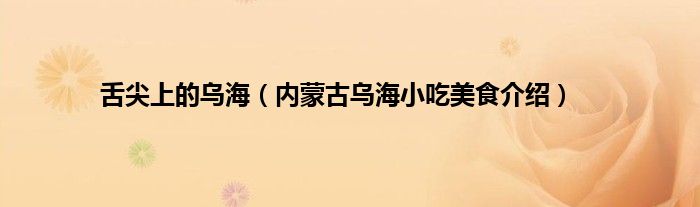 大家好,小常来为大家解答以上问题。舌尖上的乌海,内蒙古乌海小吃美食介绍很多人还不知道,现在让我们一起来看看吧!