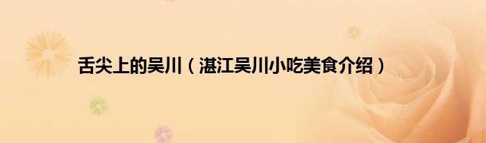 大家好,小常来为大家解答以上问题。舌尖上的吴川,湛江吴川小吃美食介绍很多人还不知道,现在让我们一起来看看吧!