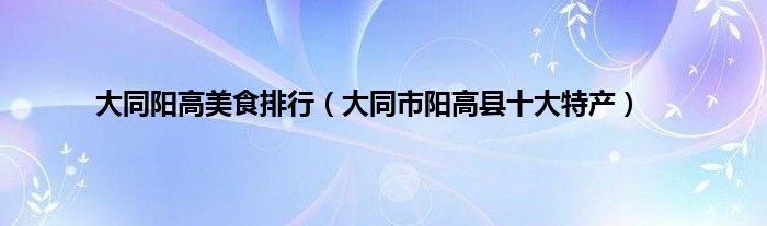 大家好,小常来为大家解答以上问题。大同阳高美食排行,大同市阳高县十大特产很多人还不知道,现在让我们一起来看看吧!