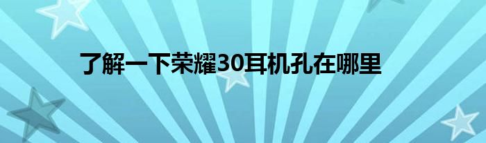 相信通过了解一下荣耀30耳机孔在哪里这篇文章能帮到你,在和好朋友分享的时候,也欢迎感兴趣小伙伴们一起来探讨。