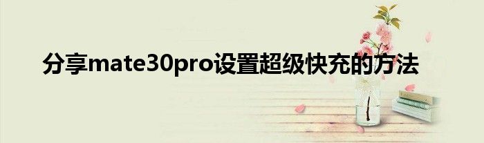 现在大家使用手机的频率越来越频繁,手机也为我们提供了许多的便利,今天小编也来说一下这个分享mate30pro设置超级快充的方法相关的文章,这个操作其实不复杂,接下来就给大家介绍一下分享mate30pro设置超级快充的方法,一起来看看吧: