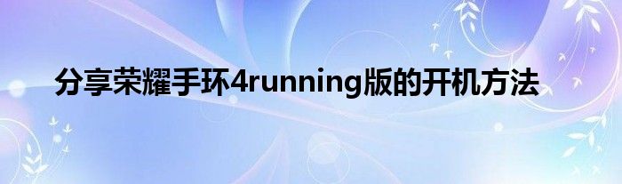 现在大家使用手机的频率越来越频繁,手机也为我们提供了许多的便利,今天小编也来说一下这个分享荣耀手环4running版的开机方法相关的文章,这个操作其实不复杂,接下来就给大家介绍一下分享荣耀手环4running版的开机方法,一起来看看吧: