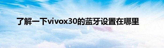 现在大家使用手机的频率越来越频繁,手机也为我们提供了许多的便利,今天小编也来说一下这个了解一下vivox30的蓝牙设置在哪里相关的文章,这个操作其实不复杂,接下来就给大家介绍一下了解一下vivox30的蓝牙设置在哪里,一起来看看吧: