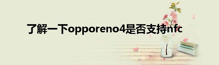 现在大家使用手机的频率越来越频繁,手机也为我们提供了许多的便利,今天小编也来说一下这个了解一下opporeno4是否支持nfc相关的文章,这个操作其实不复杂,接下来就给大家介绍一下了解一下opporeno4是否支持nfc,一起来看看吧: