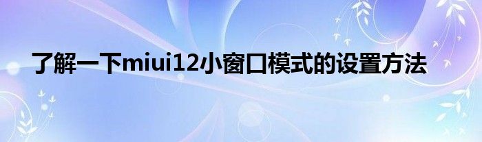 现在大家使用手机的频率越来越频繁,手机也为我们提供了许多的便利,今天小编也来说一下这个了解一下miui12小窗口模式的设置方法相关的文章,这个操作其实不复杂,接下来就给大家介绍一下了解一下miui12小窗口模式的设置方法,一起来看看吧:
