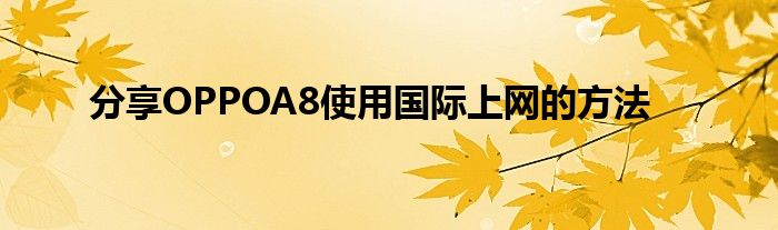 相信通过分享OPPOA8使用国际上网的方法这篇文章能帮到你,在和好朋友分享的时候,也欢迎感兴趣小伙伴们一起来探讨。
