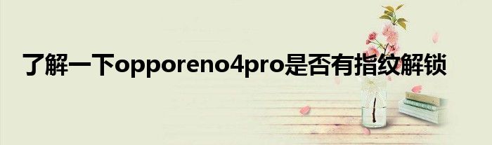 现在大家使用手机的频率越来越频繁,手机也为我们提供了许多的便利,今天小编也来说一下这个了解一下opporeno4pro是否有指纹解锁相关的文章,这个操作其实不复杂,接下来就给大家介绍一下了解一下opporeno4pro是否有指纹解锁,一起来看看吧: