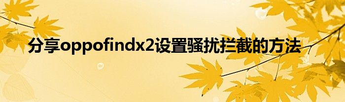 现在大家使用手机的频率越来越频繁,手机也为我们提供了许多的便利,今天小编也来说一下这个分享oppofindx2设置骚扰拦截的方法相关的文章,这个操作其实不复杂,接下来就给大家介绍一下分享oppofindx2设置骚扰拦截的方法,一起来看看吧: