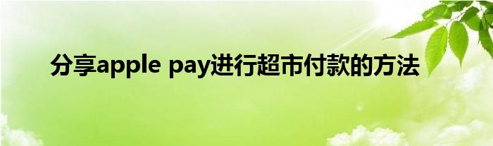 现在大家使用手机的频率越来越频繁,手机也为我们提供了许多的便利,今天小编也来说一下这个分享apple pay进行超市付款的方法相关的文章,这个操作其实不复杂,接下来就给大家介绍一下分享apple pay进行超市付款的方法,一起来看看吧: