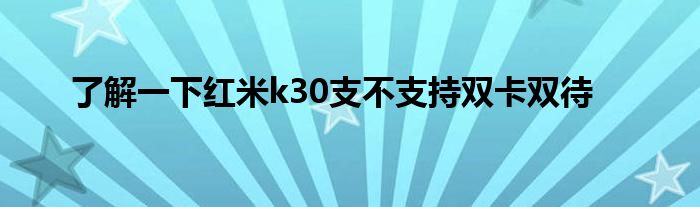 现在大家使用手机的频率越来越频繁,手机也为我们提供了许多的便利,今天小编也来说一下这个了解一下红米k30支不支持双卡双待相关的文章,这个操作其实不复杂,接下来就给大家介绍一下了解一下红米k30支不支持双卡双待,一起来看看吧: