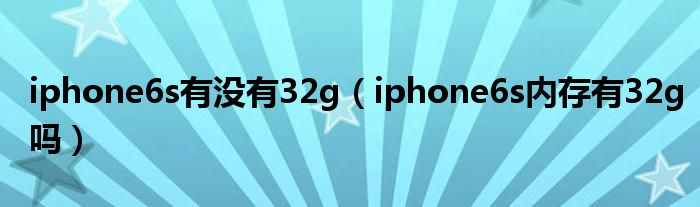 大家好,小常来为大家解答以上问题。iphone6s有没有32g,iphone6s内存有32g吗很多人还不知道,现在让我们一起来看看吧!