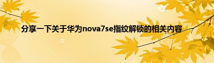 相信通过分享一下关于华为nova7se指纹解锁的相关内容这篇文章能帮到你,在和好朋友分享的时候,也欢迎感兴趣小伙伴们一起来探讨。