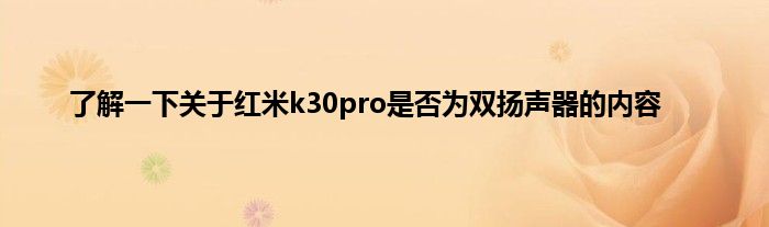 现在大家使用手机的频率越来越频繁,手机也为我们提供了许多的便利,今天小编也来说一下这个了解一下关于红米k30pro是否为双扬声器的内容相关的文章,这个操作其实不复杂,接下来就给大家介绍一下了解一下关于红米k30pro是否为双扬声器的内容,一起来看看吧: