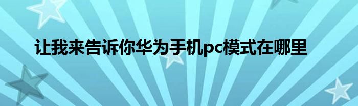 相信通过让我来告诉你华为手机pc模式在哪里这篇文章能帮到你,在和好朋友分享的时候,也欢迎感兴趣小伙伴们一起来探讨。