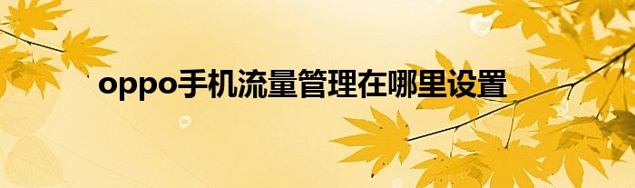以上就是小编为大家带来的oppo手机流量管理在哪里设置的全部内容了
