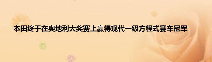 本田在2019年奥地利大奖赛上获胜,标志着重返一级方程式赛车领奖台的第一步。Max Verstappen为使用本田RA619H动力装置的阿斯顿·马丁Red Bull Racing驾驶,以惊人的方式赢得了比赛。